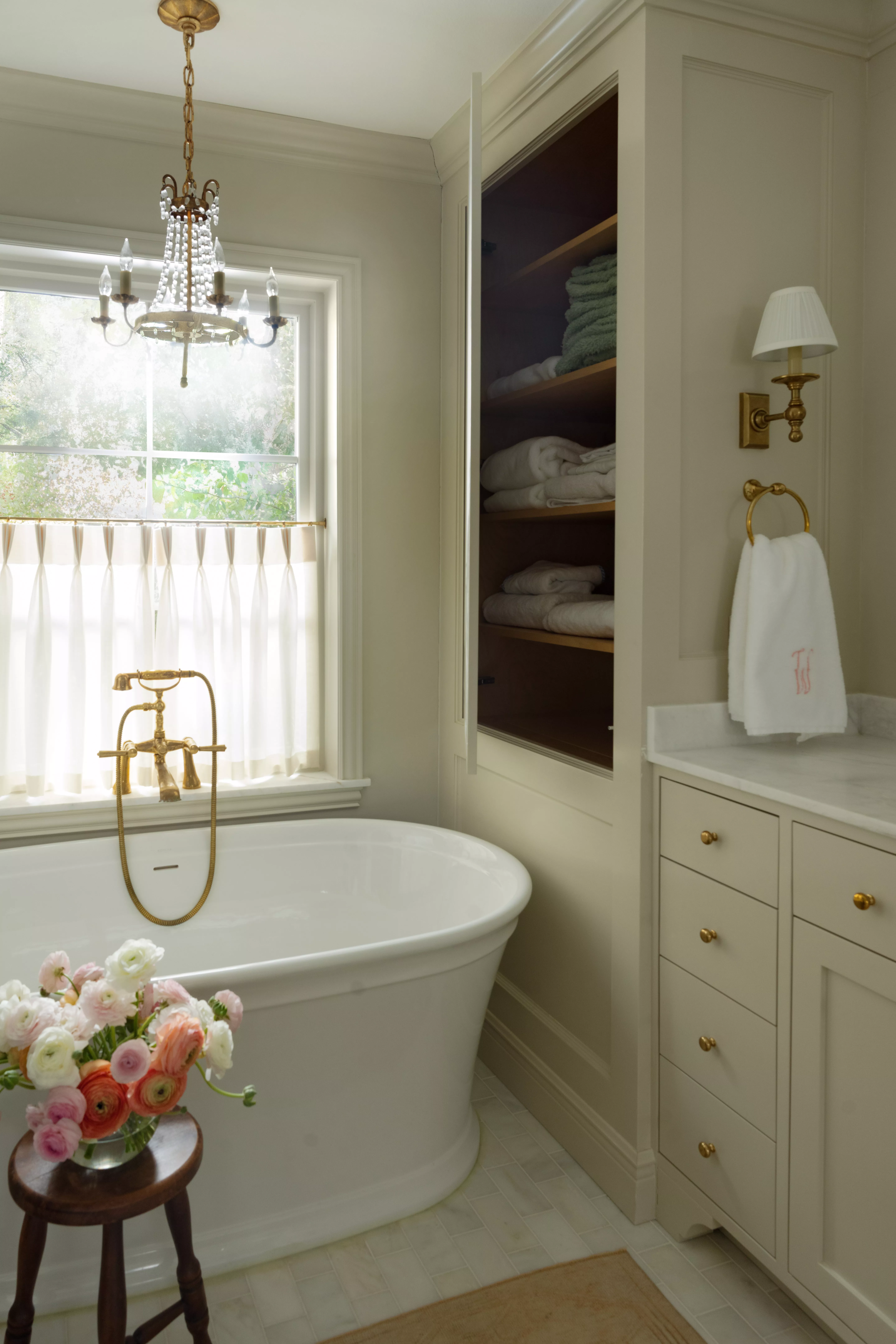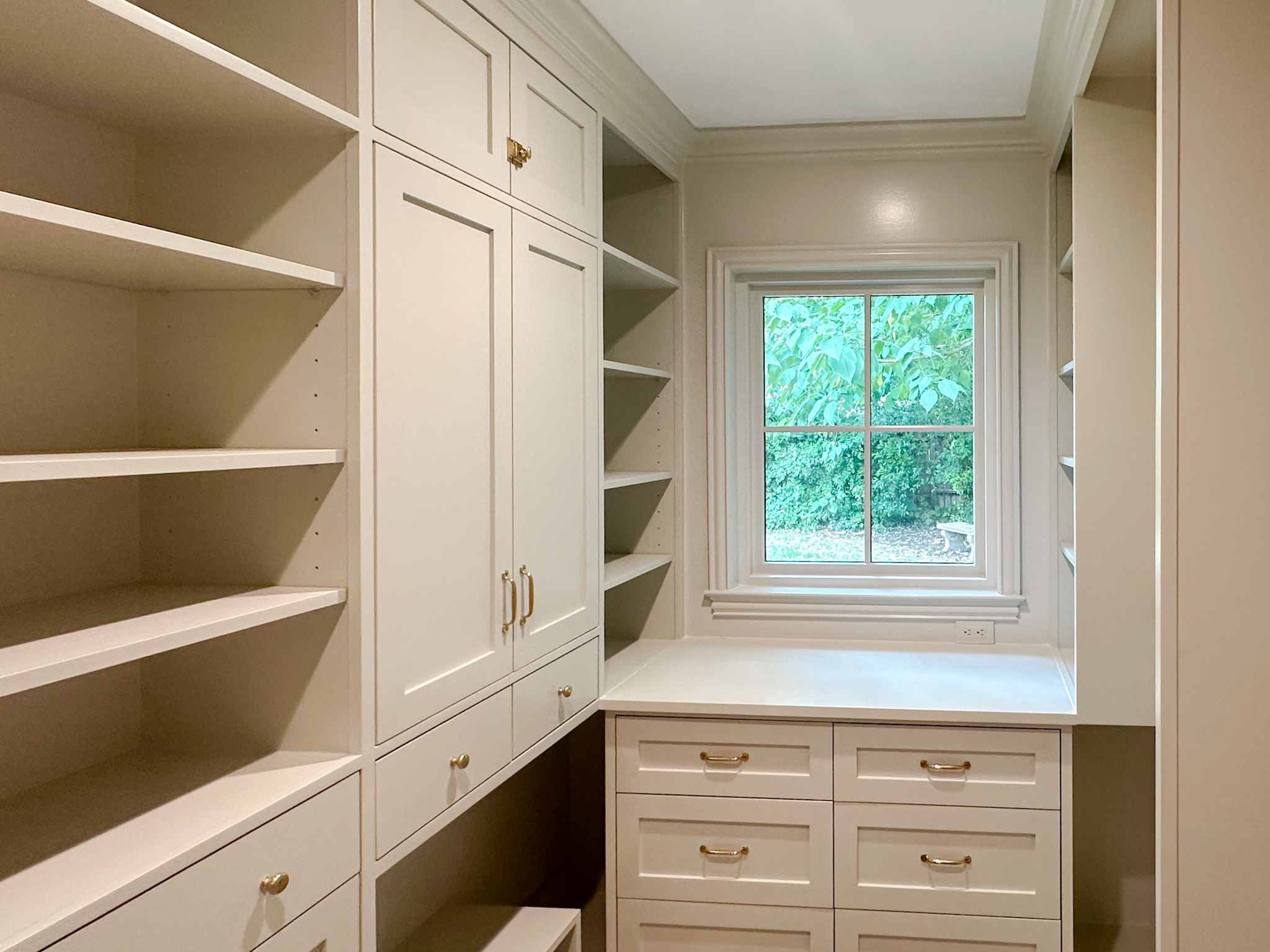 The goal was to create a primary suite out of two bedrooms with no existing plumbing. I wanted to utilize the space really efficiently in order to get a double shower, standalone bathtub, water closet, and walk-in closet. I designed the layout, cabinetry, and all finishing details.